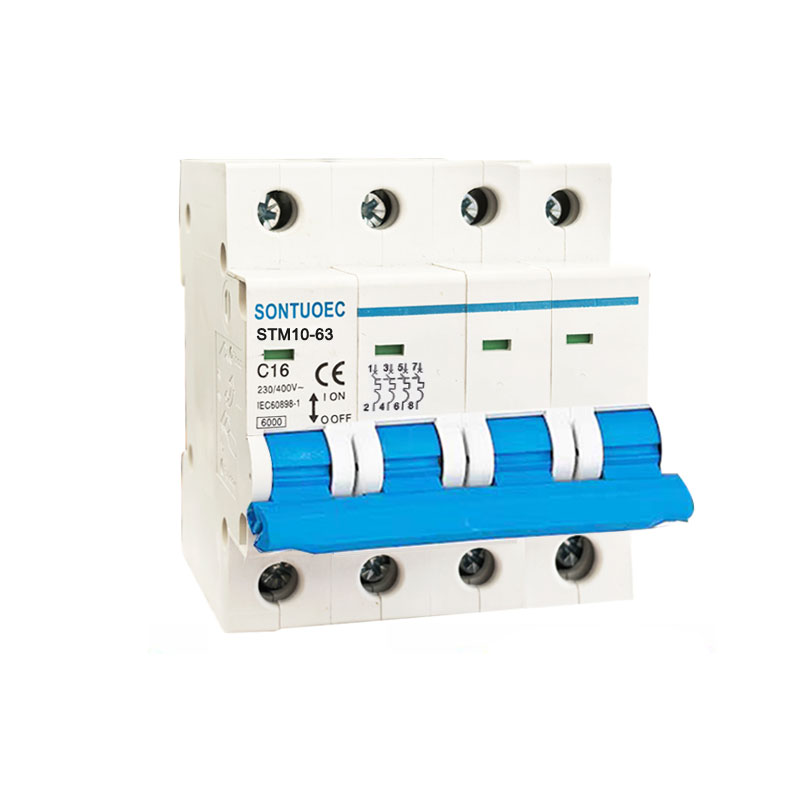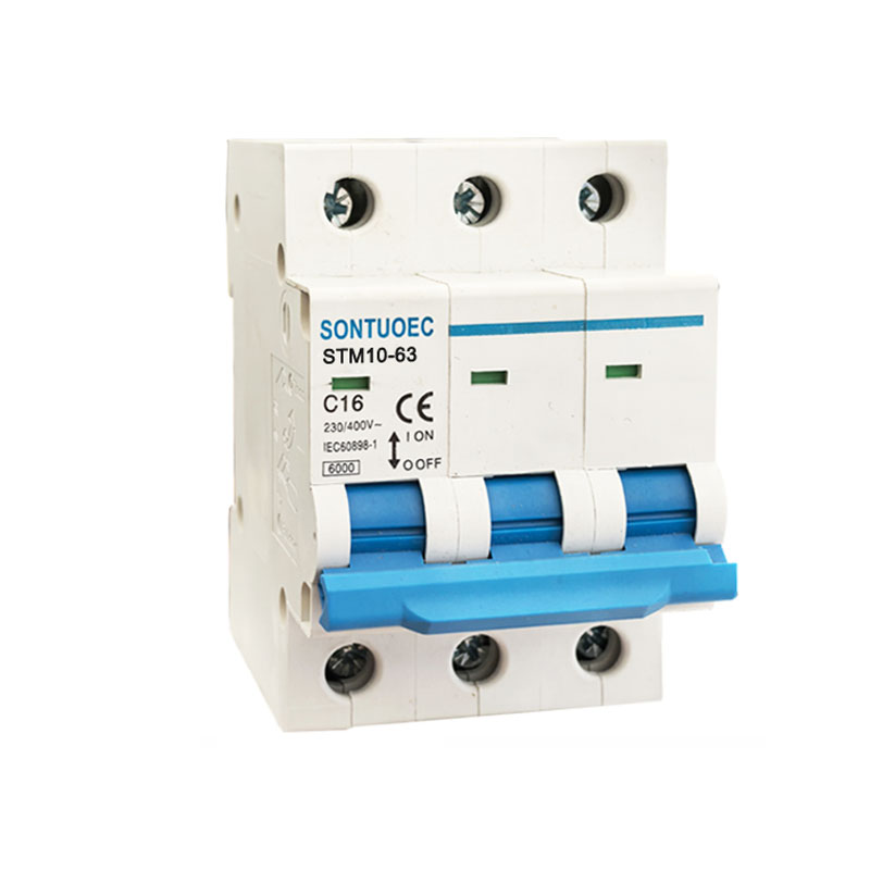 Os MCBs geralmente contêm um detector de disparo térmico magnético ou eletrônico em seu interior, que é usado para detectar mudanças na corrente no circuito. Quando a corrente é anormal, o atacante aciona o mecanismo de disparo do MCB, fazendo com que o disjuntor miniatura STM10-63 desligue rapidamente o circuito.
