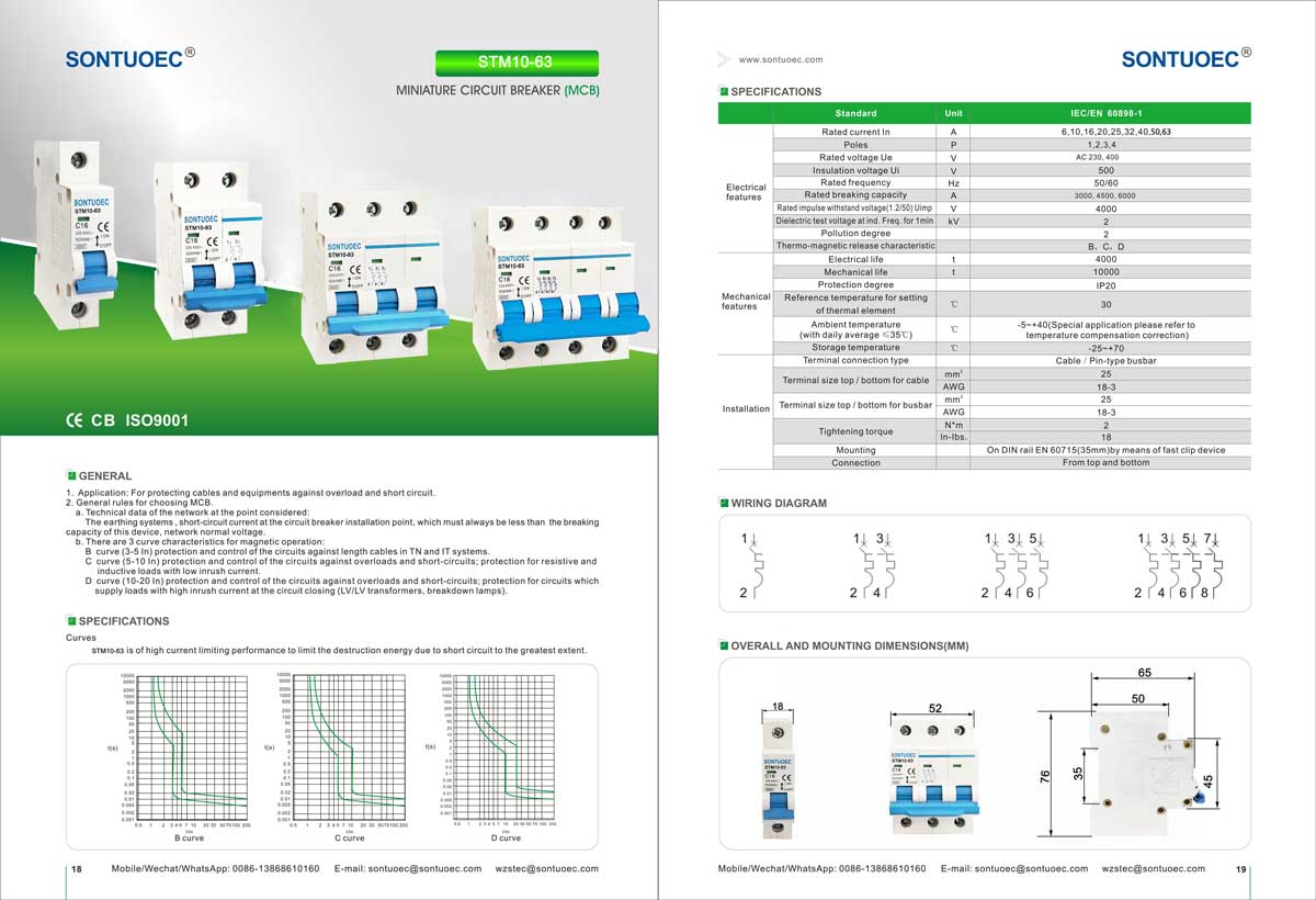 1.Seleção: Ao selecionar MCBs, você precisa considerar fatores como a corrente nominal do circuito, nível de tensão, características de proteção e se a proteção contra vazamento é necessária. Também é importante garantir que o disjuntor miniatura STM10-63 selecionado esteja em conformidade com os padrões e regulamentos locais de segurança elétrica.