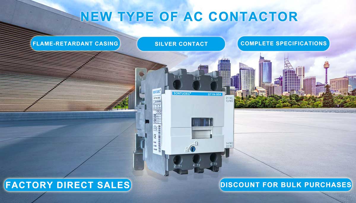 SONTUOEC é um dos fornecedores/fabricantes chineses especializados na produção de vários pequenos aparelhos elétricos. O contator CA da série ST1N é adequado para usar nos circuitos a tensão nominal de até 660 V CA 50 Hz ou 60 Hz, corrente nominal de até 95 A, para fazer e interromper, iniciar e controlar frequentemente o motor CA. Combinado com o bloco de contato auxiliar, atraso do temporizador e dispositivo de intertravamento da máquina, etc., ele se torna o contator de retardo, contator de intertravamento mecânico, partida estrela-triângulo. Com um relé térmico, ele é combinado em uma partida eletromagnética. O contator é produzido de acordo com IEC 60947-1.