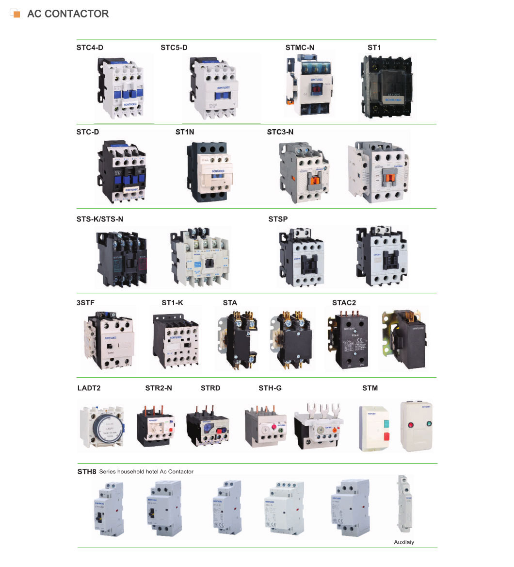O Sontuoec é um dos fornecedores/fabricantes chineses especializados na produção de vários pequenos aparelhos elétricos STS-N95 SIGNE AC Contactor 220V, 380V 3psonon é adequado para o uso nos circuitos da tensão nominal de até 660V AC 50Hz ou 60Hz, a corrente classificada até 95A, para fazer e quebrar a corrente. Combinado com o bloco de contato auxiliar, o atraso do timer e o dispositivo de bloqueio de máquina etc., ele se torna o contator de atraso, o contator de intertravamento mecânico, o iniciador de estrela-delta. Com o relé térmico, é combinado no acionador eletromagnético. O contator é produzido de acordo com a IEC 60947-4-1.